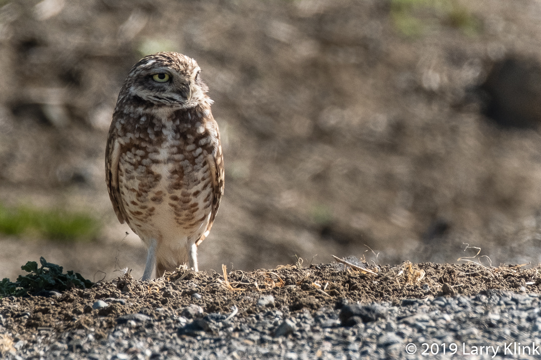 Burrowing Owls are interesting little creatures. Unlike most owls, these 8”-10” owls forage during the day and they live in burrows in the ground that were abandoned by ground squirrels, prairie dogs and the like. They spend most of their time on the ground or on low perches. They eat insects and small animals. I’ve even red that they will carry dung near the burrows to attract insects.