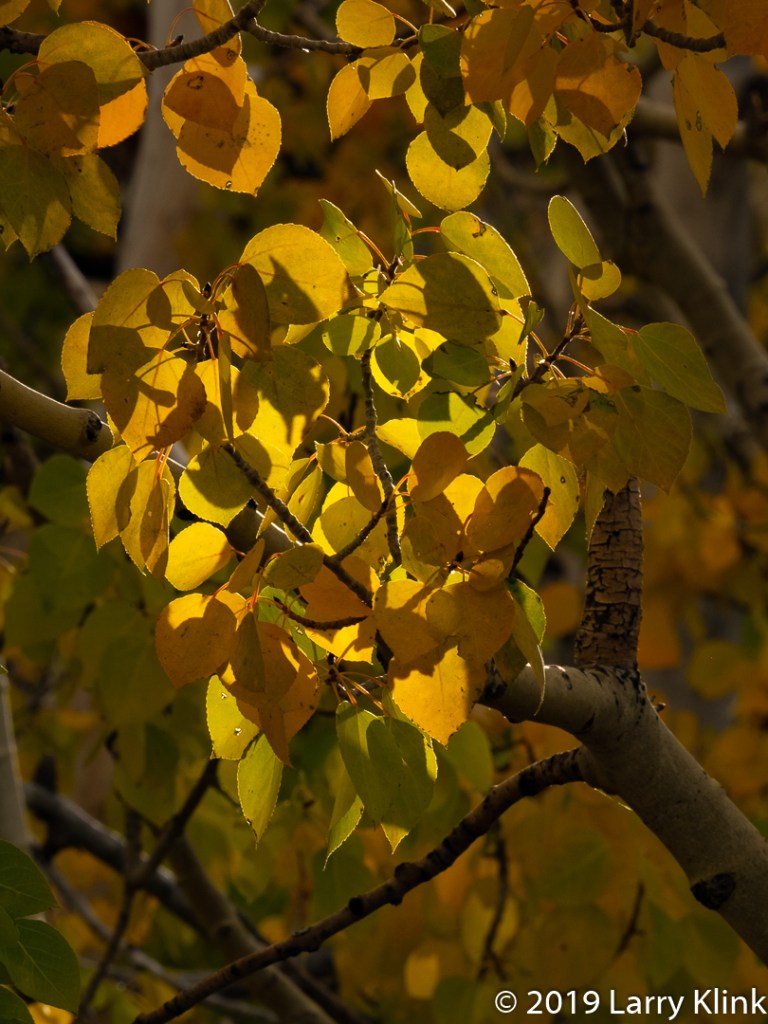 Two weeks ago, we made a trip to the eastern Sierra to enjoy fall colors. In many places, the aspen were beautifully adorned in bright yellow and orange. It was a wonderful trip. We wandered around on dirt roads in the mountains and deserts. We saw many of the features of the Sierra and White-Inyo mountains from new perspectives. It was a wonderful trip.