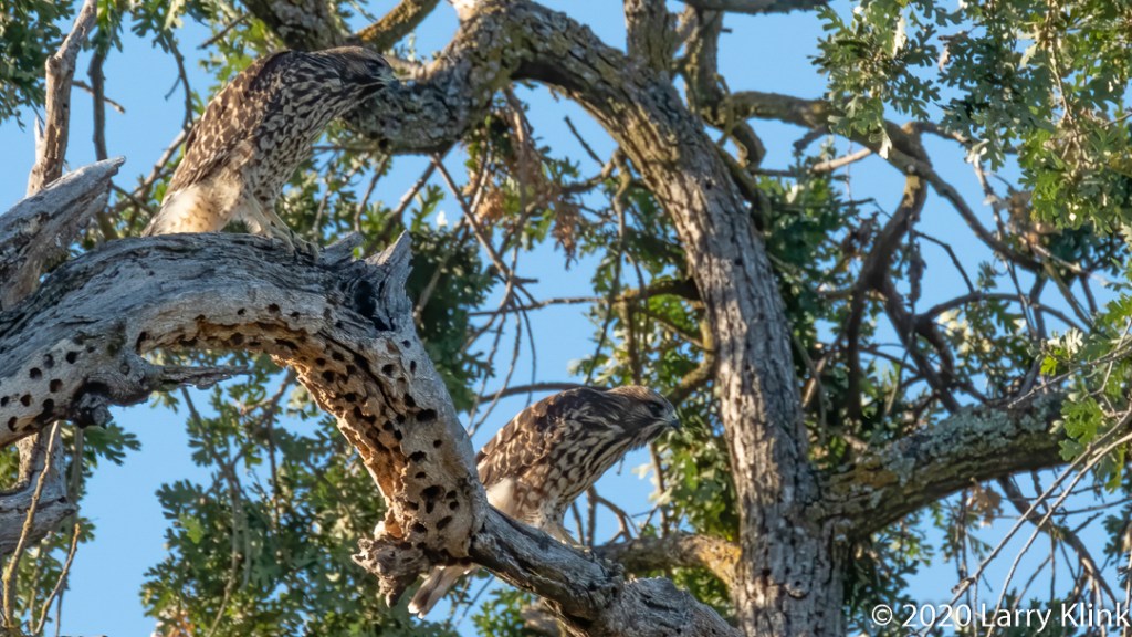 When photographing, one goal is to make your subject stand out. In 2 photos, I violated that rule, for a purpose. Check out the young Red-shouldered Hawks and the juvenile Western Kingbird. The point of interest, beside the birds themselves, is their marvelous camouflage.