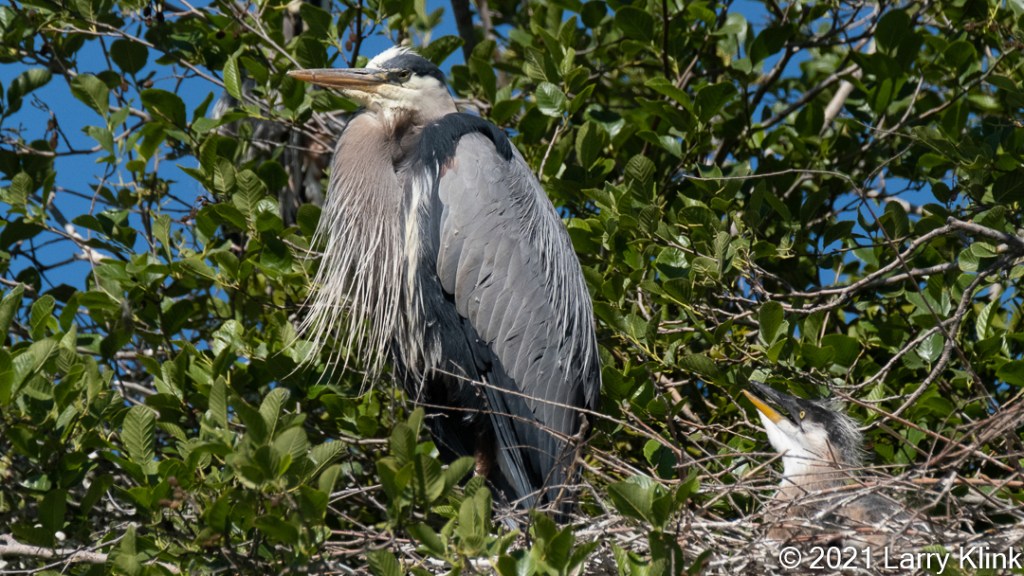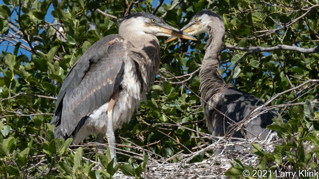 I am fortunate that a pair of Great Blue Herons chose to nest near one of my favorite walking/photography trails. I was only able to visit them 3 times this spring. So, this series of images consists of 3 sets taken approximately a month apart. In the second set, one of the adults is on the nest and the other is behind the tree branches. In the third set, the chicks are too big and the adult can’t get on the nest with them so it is behind the tree branches.