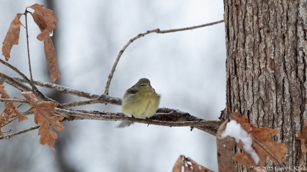 Check out the Ruby-crowned Kinglet. It was a cold morning. It had itself puffed-up to insulate against the cold. Doing so included flashing his red crown. I’ve been trying for several years to get a picture with the crown showing; it’s a rare shot to get. Being all puffed-up, he looks like he escaped from the Angry Birds game.