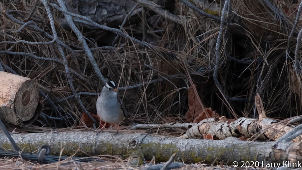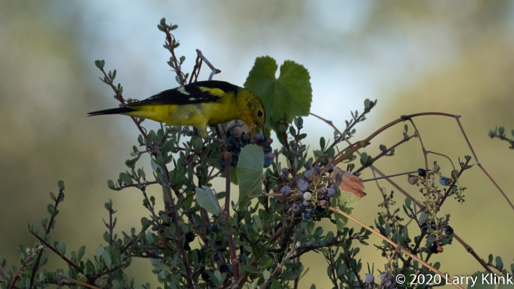 As you are walking, look for them. Small flocks will move from tree to tree while foraging. While on the tree, they flit from branch to branch at a frenetic pace making them fun to watch. The male has a black eye while the female has a yellow eye.