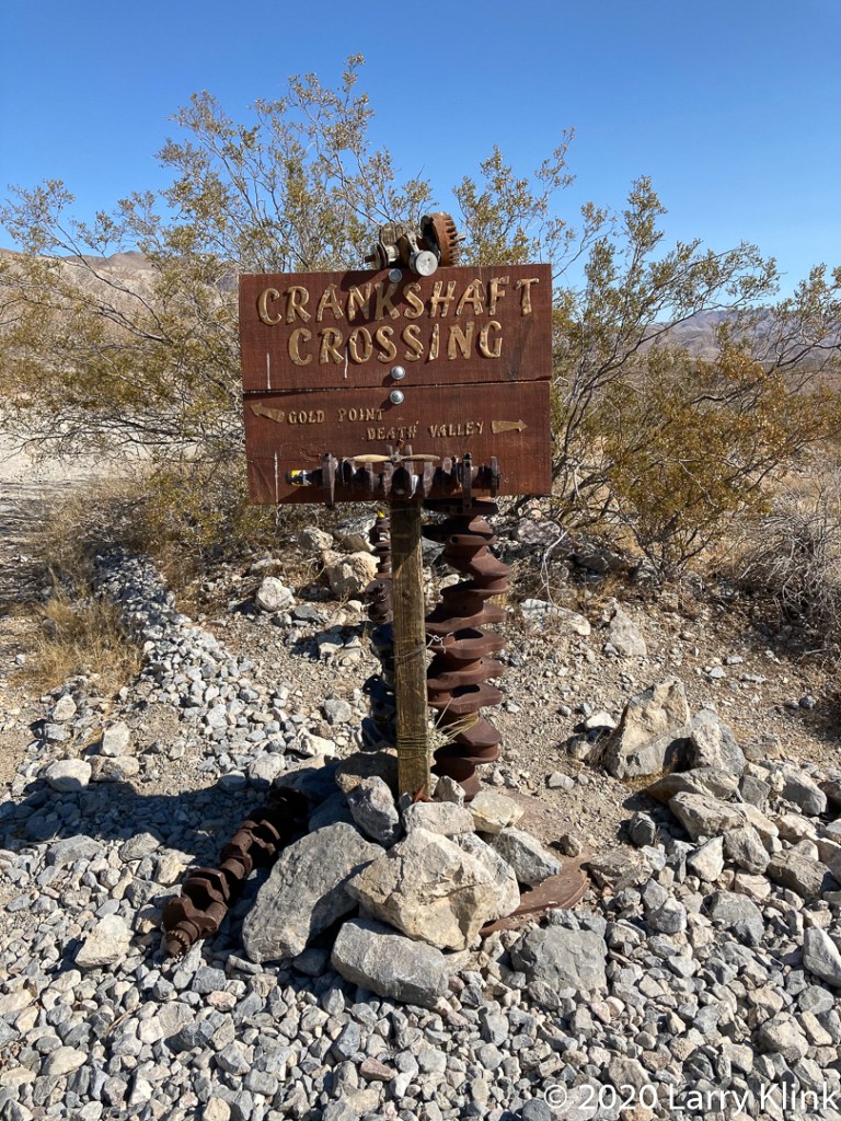 On our last trip to the Eastern Sierra, we explored Big Pine – Death Valley Road. Twenty-five miles from Big Pine, CA, the pavement ends, and you enter Death Valley National Park.  The route took us through Eureaka Valley, over the Last Chance Mountains to Crankshaft Crossing where we made a right to continue on Death Valley Road. That led us to Ubehebe Road then to Scotty’s Castle Road and further to Stovepipe Wells. It was a fun trip through beautiful desert despite the tire shredding rocks and washboard grating on the road. If you ever take this route be careful. Have really good tires and plan your timing; there are many washes that cross the road. They were all in good repair when we took the trip in early autumn. But, they could be bad in other times of the year.