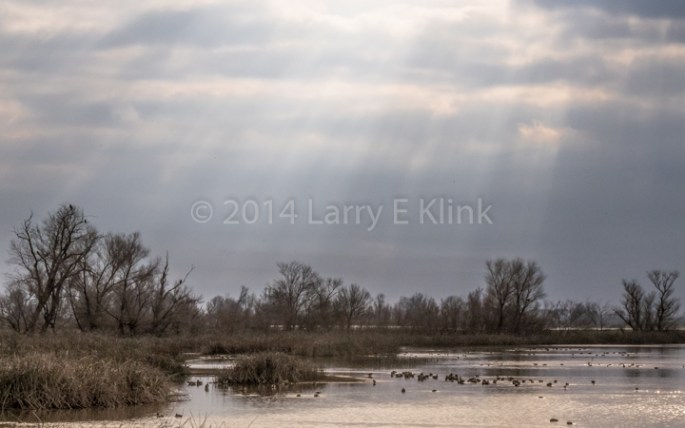 I visited the Sacramento National Wildlife Refuge earlier this week. The day was overcast. I knew birds would be present. I wasn’t hopeful that it would be a great day to photograph them. But, on this day, nature provided ephemeral shafts of sunlight through breaks in the otherwise impenetrable layer of dark gray, stratus, clouds. The shafts highlighted the sky and the ponds, while casting the trees and birds in silhouette. It created a mood that captured the essence of a winter afternoon: the sun providing reassurance to the birds and trees resting and waiting for life to start anew. It was a great day after all.